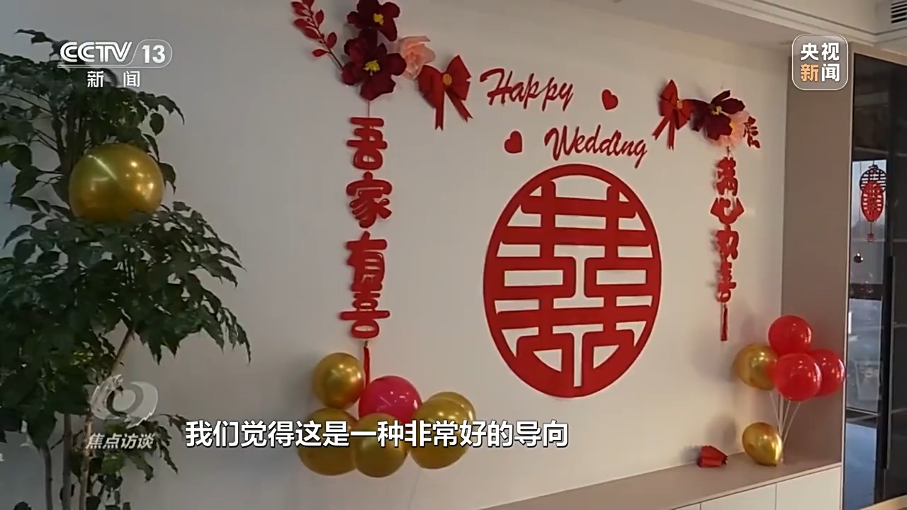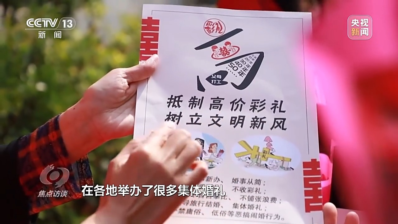 共青團(tuán)中央宣傳部副部長 劉釗:我們在進(jìn)行社會(huì)倡導(dǎo),進(jìn)行文明引導(dǎo),在各地舉辦了很多集體婚禮,確實(shí)得到了基層青年比較熱烈比較積極的響應(yīng)。他們用更樸素更自然更貼近自己實(shí)際需求的方式方法來籌辦自己的婚禮,也來回應(yīng)一些高額彩禮給他們所帶來的壓力,我們覺得這是一種非常好的導(dǎo)向。