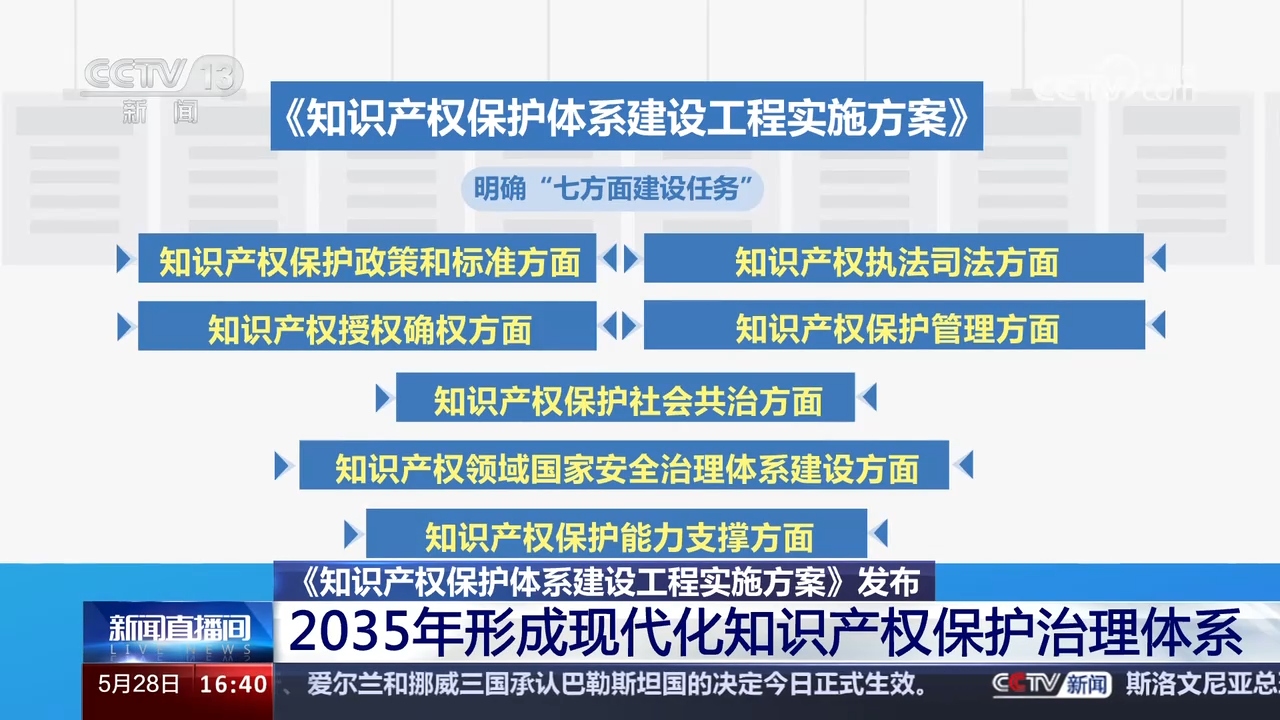 國家知識產(chǎn)權(quán)局5月28日舉行新聞發(fā)布會,重點介紹《知識產(chǎn)權(quán)保護體系建設(shè)工程實施方案》(以下簡稱《方案》)有關(guān)情況?!斗桨浮访鞔_,到2035年,知識產(chǎn)權(quán)保護體系和保護能力現(xiàn)代化基本實現(xiàn),形成政府履職盡責(zé)、執(zhí)法部門嚴(yán)格監(jiān)管、司法機關(guān)公正司法、經(jīng)營主體規(guī)范管理、行業(yè)組織自律自治、社會公眾誠信守法的現(xiàn)代化知識產(chǎn)權(quán)保護治理體系。