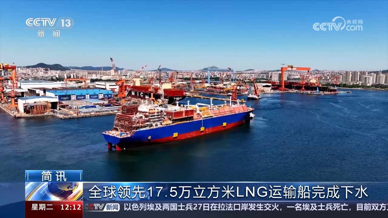 全球領(lǐng)先 17.5萬立方米LNG運輸船完成下水