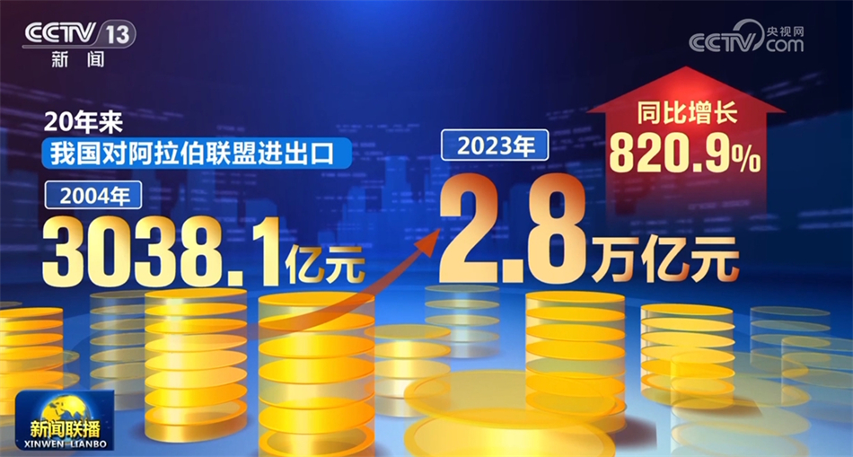 5月30日是中國—阿拉伯國家合作論壇成立20周年。據(jù)海關統(tǒng)計,20年來,我國對阿拉伯聯(lián)盟進出口由2004年的3038.1億元增長至2023年的2.8萬億元,同比增長820.9%。