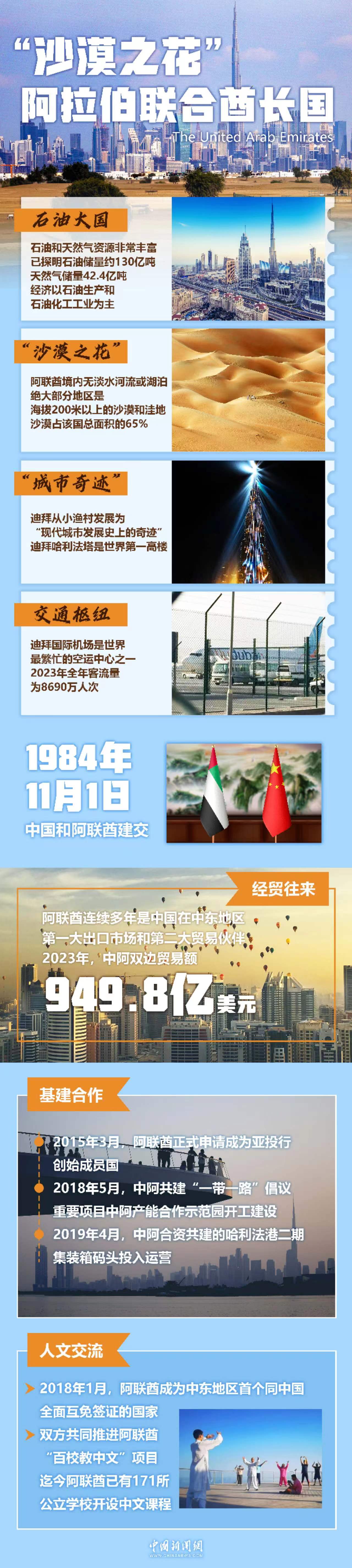 穆罕默德表示,阿聯(lián)酋同中國關(guān)系建立在相互信任、相互尊重和共同利益的基礎之上,各領域合作達到非凡水平。