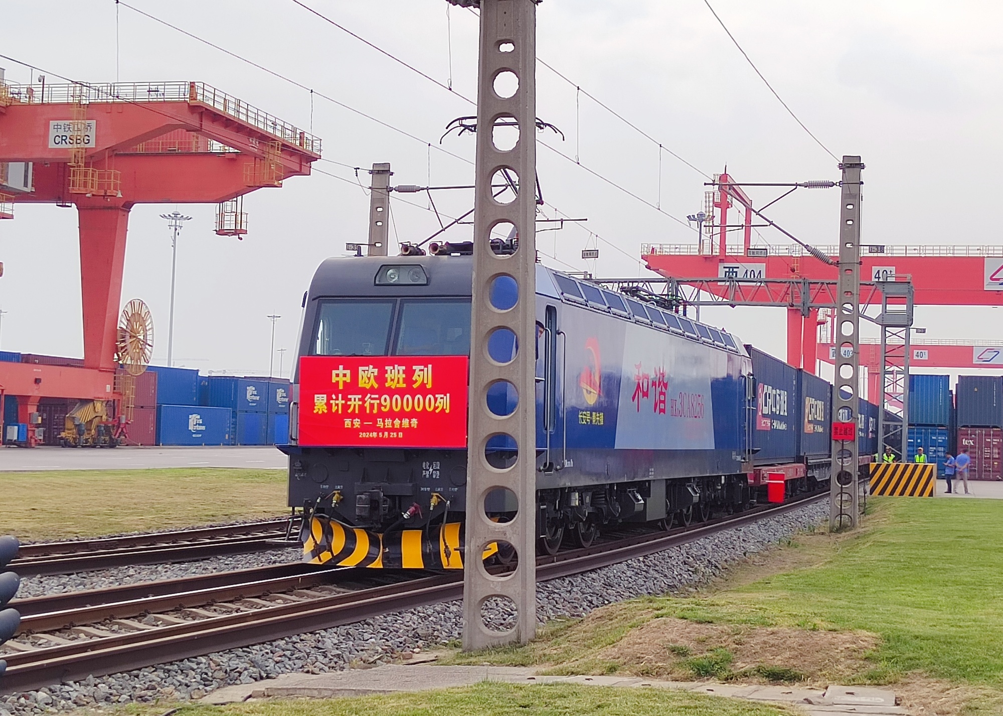 中歐班列,晝夜馳騁在歐亞大陸上,聯(lián)通東西,暢通貿(mào)易,是“絲綢之路經(jīng)濟(jì)帶”上的“鋼鐵駝隊(duì)”。今年5月24日,隨著X8157次中歐班列從西安國(guó)際港站發(fā)出,一路向西開(kāi)去,中歐班列已經(jīng)累計(jì)開(kāi)行9萬(wàn)列。從2013年開(kāi)行80列到2016年開(kāi)行1702列,再到2023年開(kāi)行1.7萬(wàn)列,十年來(lái),中歐班列不斷跑出“加速度”,目前已通達(dá)歐洲25個(gè)國(guó)家223個(gè)城市,連接11個(gè)亞洲國(guó)家一百多個(gè)城市,服務(wù)網(wǎng)絡(luò)基本覆蓋歐亞全境,年運(yùn)輸貨值由2016年80億美元增長(zhǎng)到2023年的567億美元。