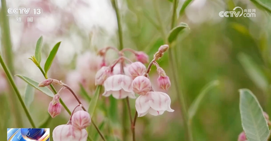 在新疆巴州尉犁縣羅布麻種植基地,粉色的羅布麻花朵直徑約1厘米左右,外形好似一枚枚倒掛枝頭的“小鈴鐺”隨風(fēng)搖曳,獨特的“沙漠花開”也吸引了來自全國各地的游客前來。