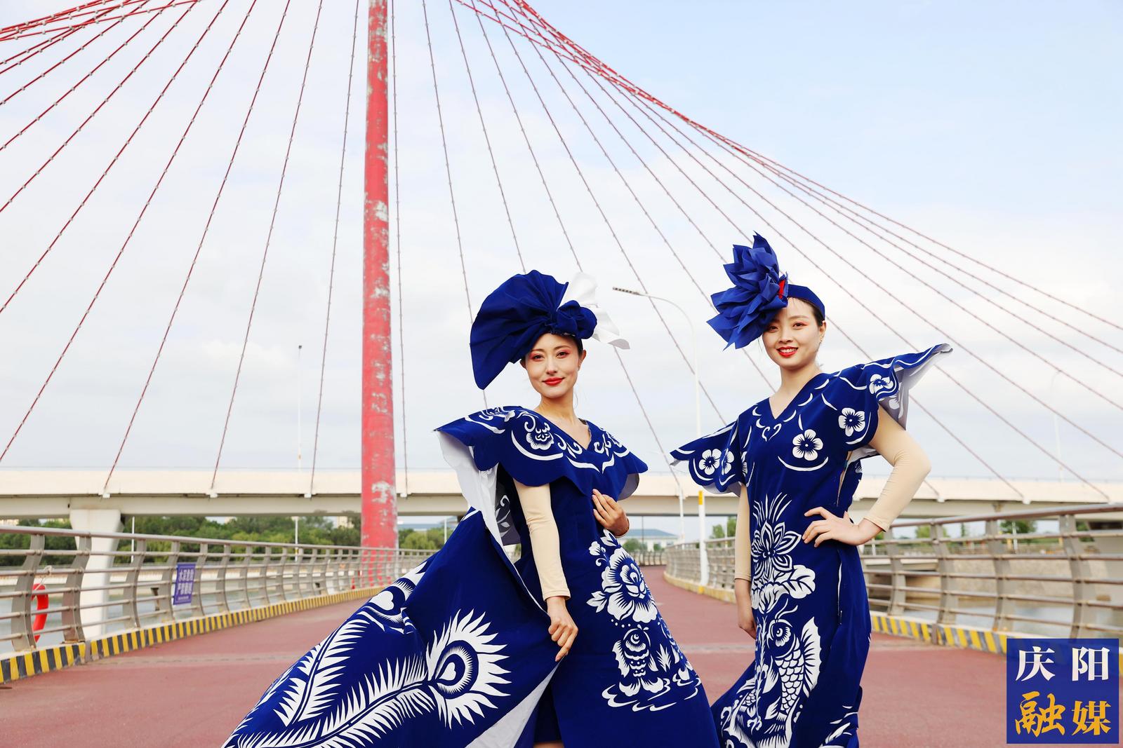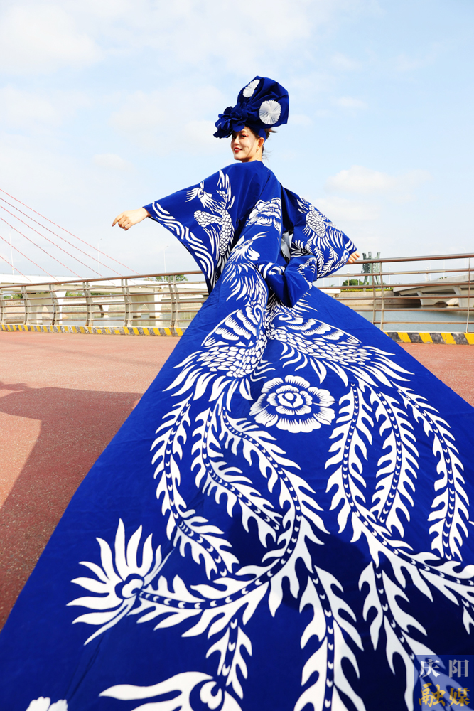 6月4日,慶陽融媒主播身著由鎮(zhèn)原縣文化館館長常燕創(chuàng)意設(shè)計的“剪云裳”慶陽剪紙系列服裝驚艷亮相。其中,“青花瓷”系列作品為全國全網(wǎng)首秀。