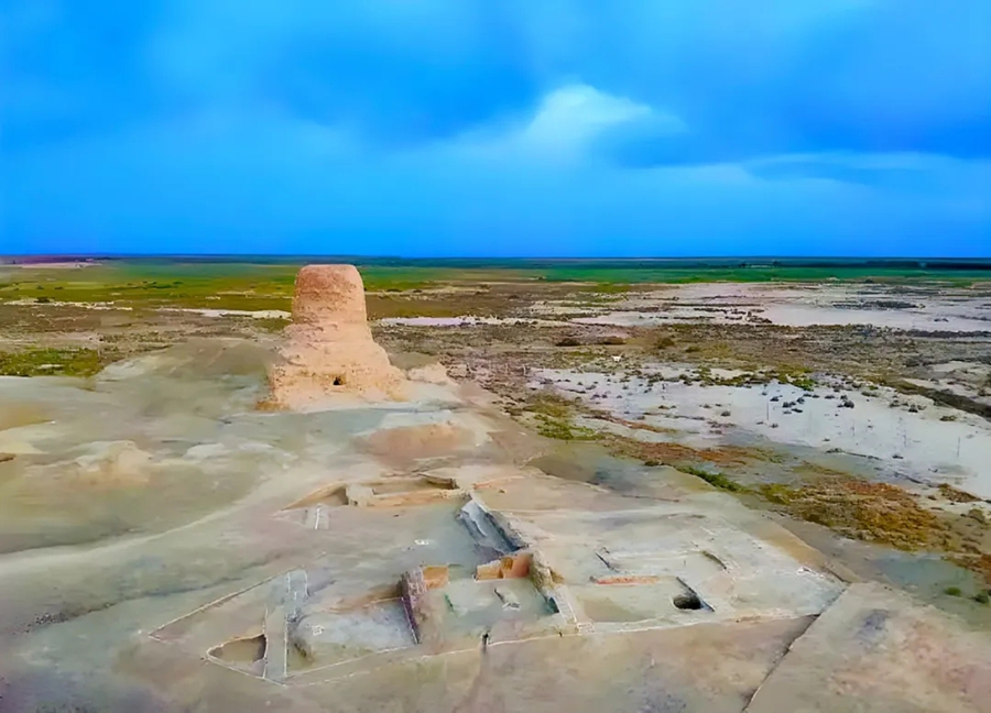莫爾寺遺址發(fā)掘現(xiàn)場:遠處為圓形塔,近處為大佛殿和僧舍建筑基址。