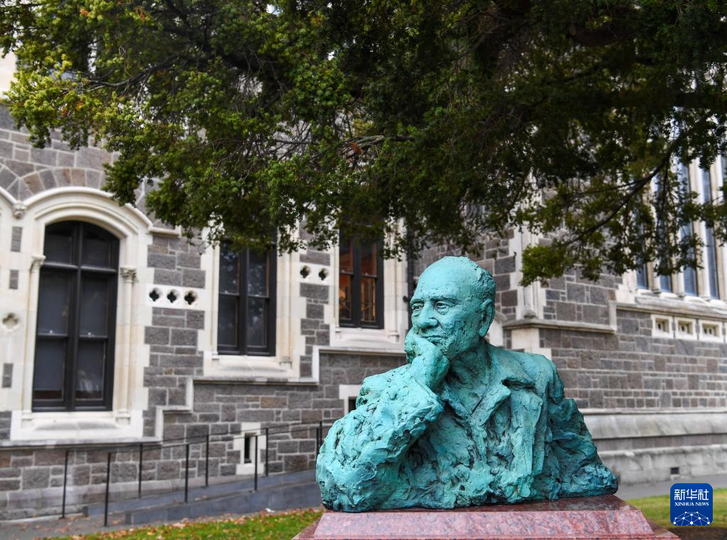 這是5月24日新西蘭克賴斯特徹奇藝術(shù)中心拍攝的路易·艾黎塑像。新華社記者 郭磊 攝