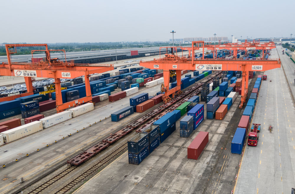 繁忙的成都國(guó)際鐵路港中,汽笛接續(xù)千年前的駝鈴聲,亞歐大陸橋上的“鋼鐵駝隊(duì)”中歐班列,用高效率連接著成都與世界。