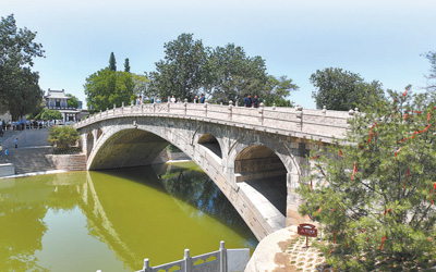 始建于隋代的趙州橋位于河北石家莊市趙縣,是世界上現(xiàn)存年代久遠(yuǎn)、跨度最大、保存最完整的單孔坦弧敞肩石拱橋。圖為趙州橋近景。