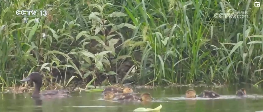 青頭潛鴨進(jìn)入繁育季 鴨寶寶順利出巢