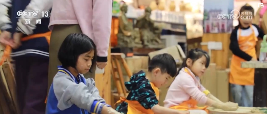 每逢節(jié)假日,長沙銅官窯博物館都有陶藝體驗活動,孩子們不僅可以把陶泥做成自己想要的器物,還能有機(jī)會得到非遺傳承人劉坤庭的現(xiàn)場指導(dǎo)。
