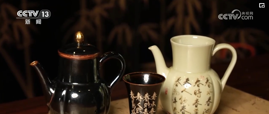 劉嘉豪是劉坤庭的兒子,這套出自他手的作品,器型、釉色的創(chuàng)意都源自“黑石號”的出水陶瓷,作品上面的詩句也是復(fù)刻而來。