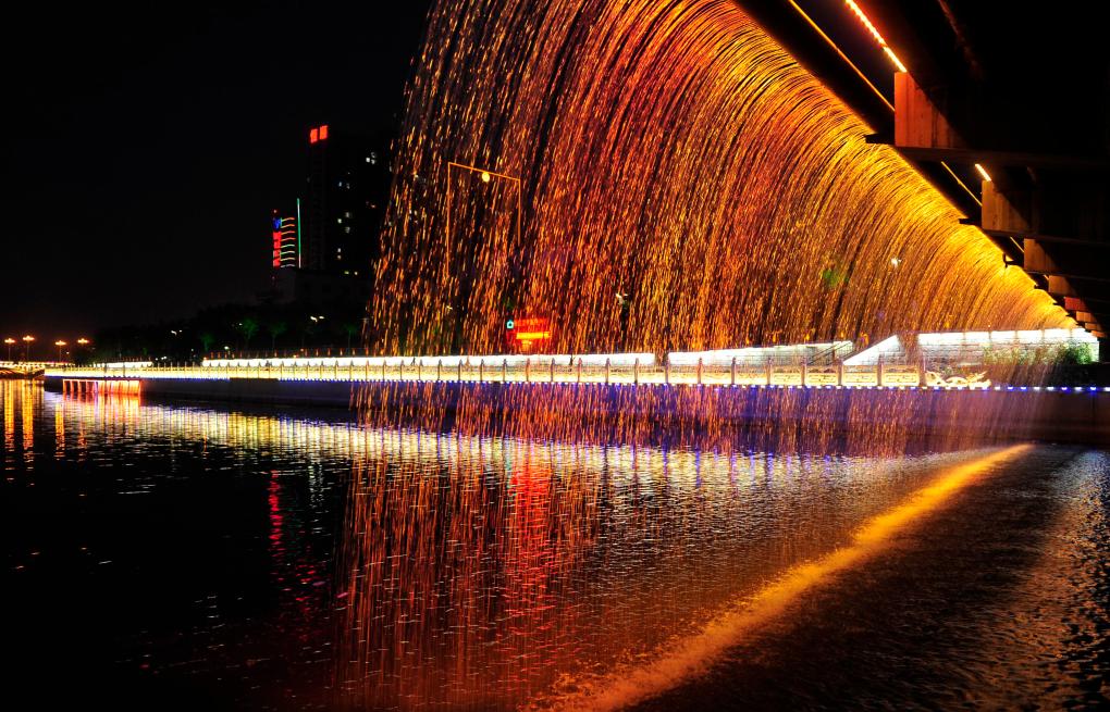 2014年6月22日,我正在河北滄州采訪,準(zhǔn)備吃晚飯時,突然看到手機(jī)上顯示大運(yùn)河申遺成功的消息。回到賓館,我拿上相機(jī)就飛奔出去,來到清風(fēng)樓下的大運(yùn)河景觀帶,記錄下了大運(yùn)河夜色。