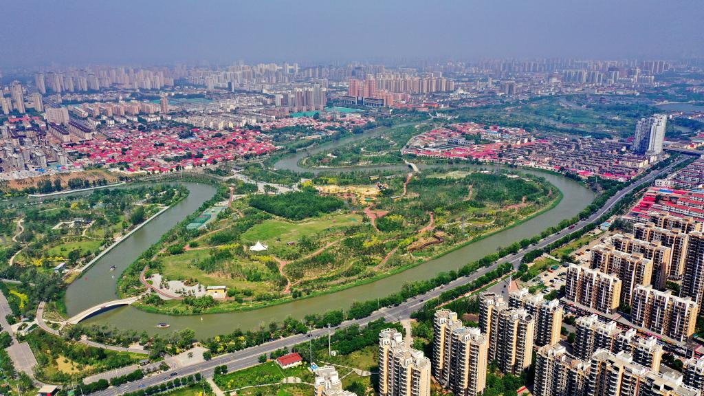 滄州大運(yùn)河生態(tài)修復(fù)展示區(qū)(2023年5月16日攝)。