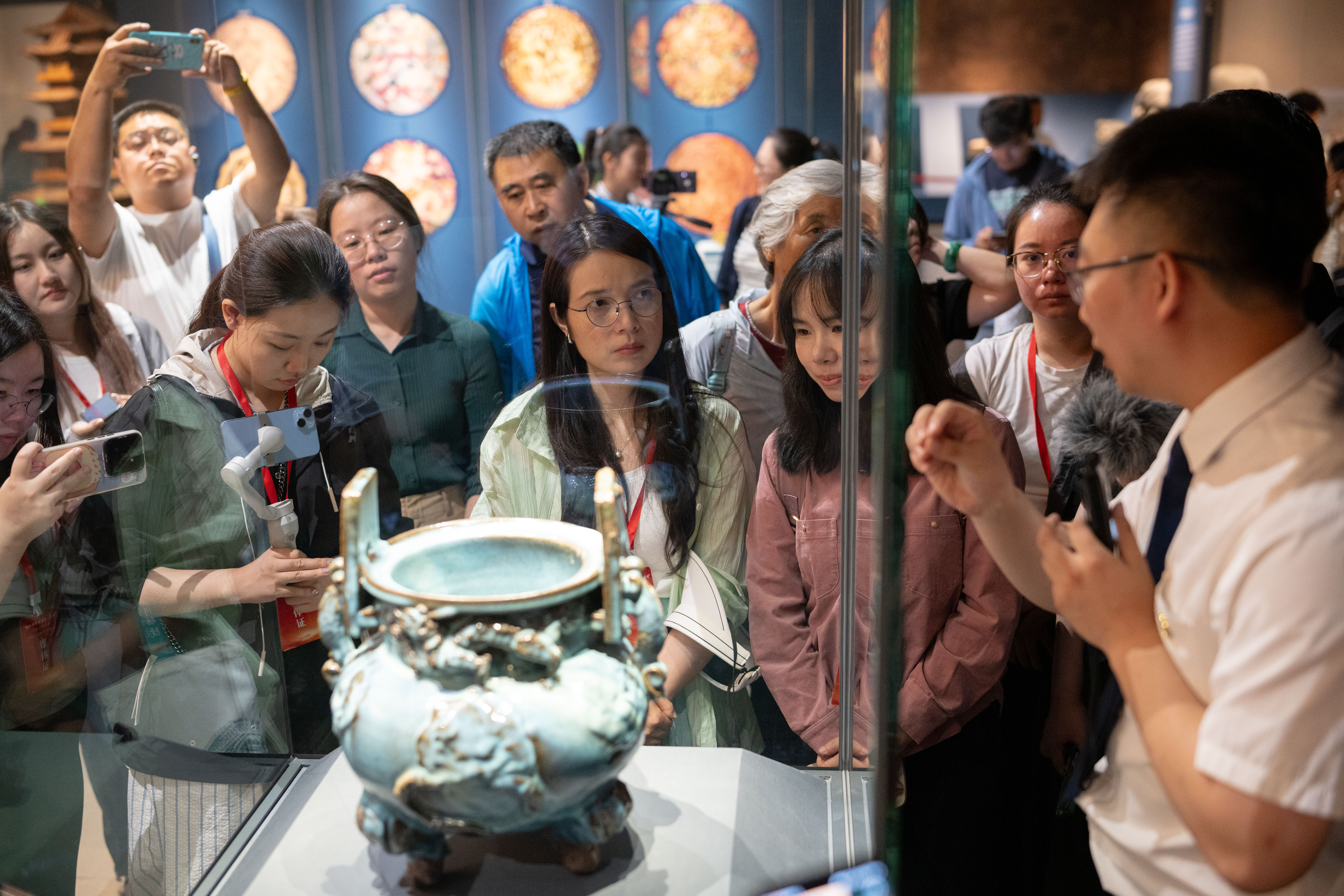 隨后,采訪團(tuán)成員來到了內(nèi)蒙古博物院,在“大遼契丹”“交融匯聚”等展廳,通過一件件經(jīng)典的藏品,一個(gè)個(gè)精彩的文物故事,了解中華民族悠久歷史和燦爛文化。