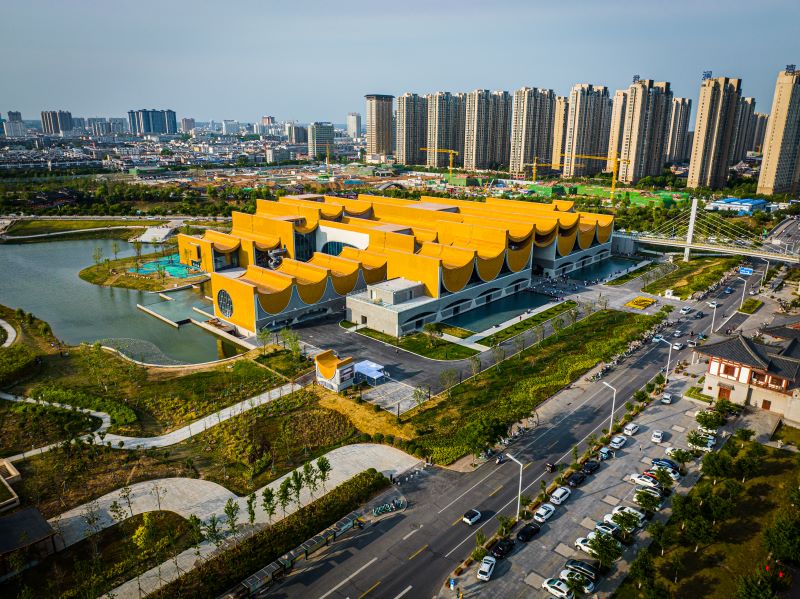 盛夏時(shí)節(jié),駐足洛河(大運(yùn)河洛陽段)之畔,能望見別致的金色屋頂在陽光下熠熠生輝,好似連綿起伏的風(fēng)吹船帆。這里,正是洛陽隋唐大運(yùn)河文化博物館。
