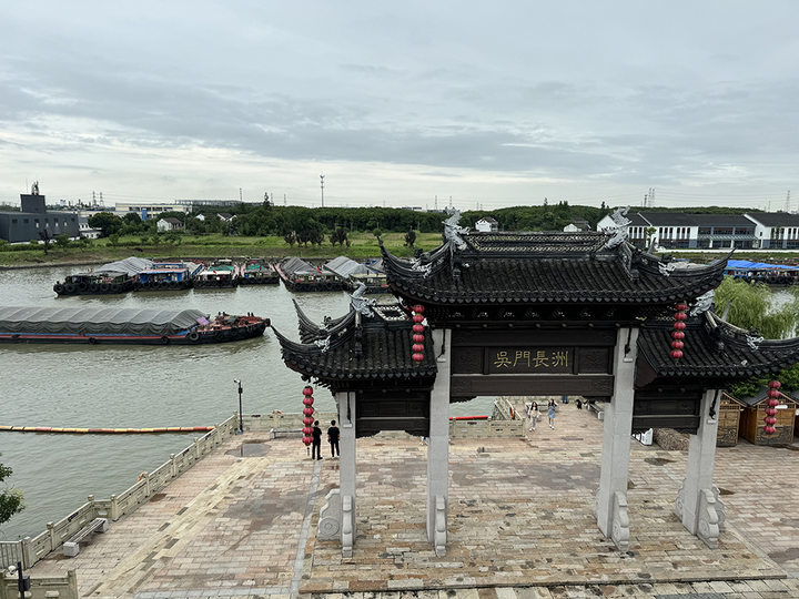 行走在運(yùn)河公園,亭、臺(tái)、樓、閣錯(cuò)落有致,碑、牌、匾、聯(lián)引人思緒。登望運(yùn)閣極目遠(yuǎn)眺,河面上舟楫如織。作為大運(yùn)河最繁忙的河段之一,每天,有數(shù)千條貨船從這里穿行,他們?cè)凇皡情T長(zhǎng)洲”的石坊前劃過(guò)的一瞬間,仿佛古今同框,一眼千年。
