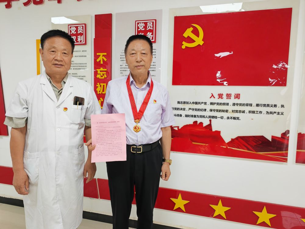 為李長(zhǎng)海頒發(fā)紀(jì)念章的是西安市高陵區(qū)醫(yī)院退休黨支部書記杜軍政,從2021年至今,他已經(jīng)為6名黨員頒發(fā)過(guò)“光榮在黨50年”紀(jì)念章?!懊恳淮晤C發(fā)紀(jì)念章,都會(huì)聽老黨員講一講他們的故事,都是一次精神的洗禮和傳承。”