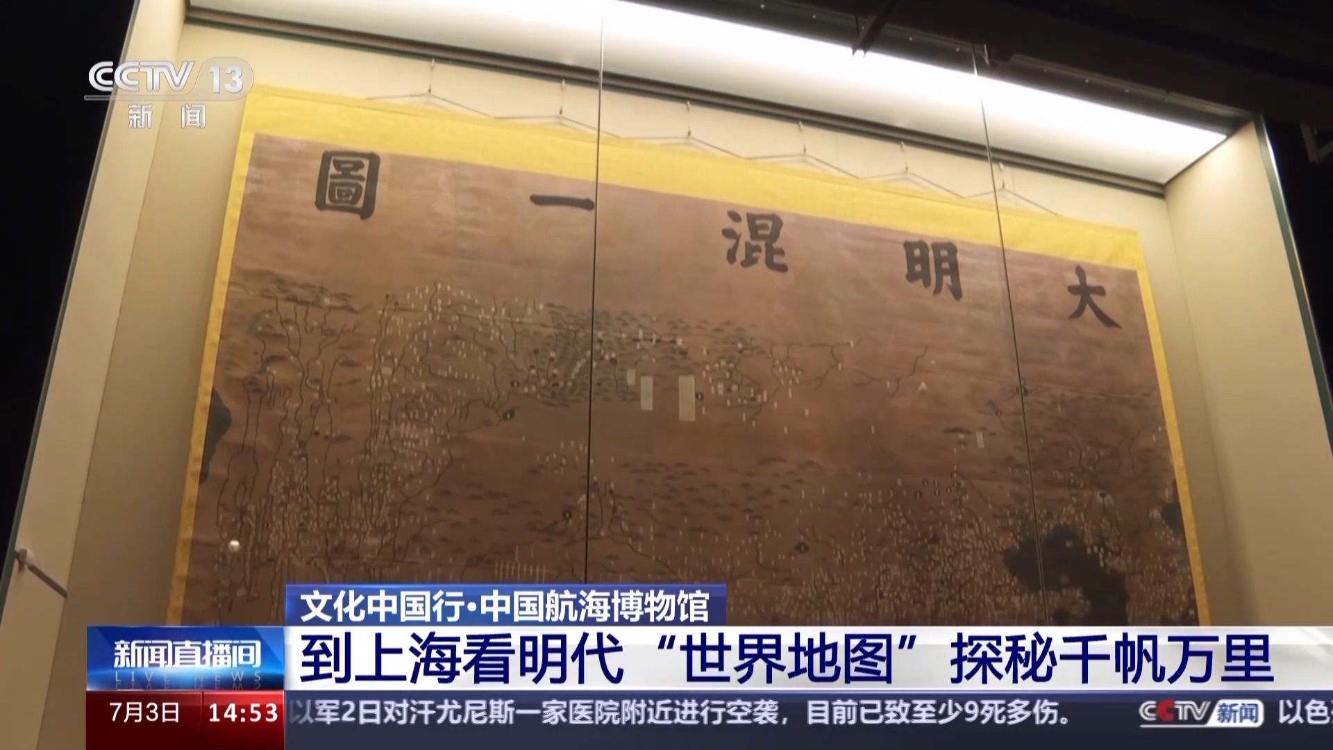 將航海技術(shù)及相關知識沿著時間順序展開,是“航海歷史展廳”的一個特色設計。這件高高懸掛的《大明混一圖》復制件,因其深厚的歷史文化底蘊,成為中國航海博物館一處熱門打卡地?!洞竺骰煲粓D》原圖制作于明洪武年間,高3.86米,寬4.56米,是我國目前已知尺寸最大、年代最久遠、保存最完好的“古代世界地圖”。這幅明代版的“世界地圖”,因較早描繪非洲準確方向及其南端的三角形地帶而引人矚目。