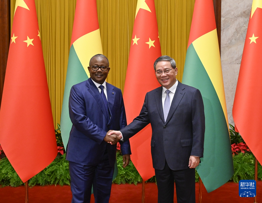 7月10日上午,國(guó)務(wù)院總理李強(qiáng)在北京人民大會(huì)堂會(huì)見來(lái)華進(jìn)行國(guó)事訪問(wèn)的幾內(nèi)亞比紹總統(tǒng)恩巴洛。新華社記者 殷博古 攝
