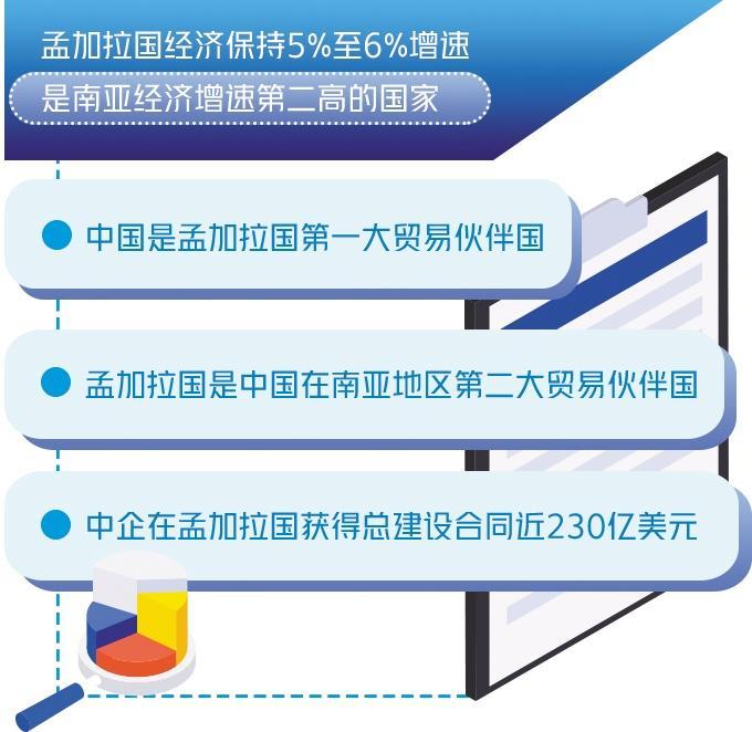 近年來,孟加拉國經(jīng)濟穩(wěn)步增長,保持5%至6%的經(jīng)濟增速,是南亞經(jīng)濟增速第二高的國家。孟加拉國推行私有化政策,改善投資環(huán)境,大力吸引外商投資,積極創(chuàng)建出口加工區(qū)。中國是孟加拉國第一大貿易伙伴國,孟加拉國是中國在南亞地區(qū)第二大貿易伙伴國。兩國在紡織服裝、路橋建設、能源、農業(yè)等領域合作基礎深厚,在基建設施、食品加工、產(chǎn)業(yè)園等領域合作潛力巨大,雙邊經(jīng)貿關系展現(xiàn)出強勁的發(fā)展勢頭。