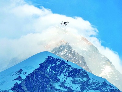 中國民用無人機完成全球首次珠峰6000米海拔物資運輸。新華社發(fā)