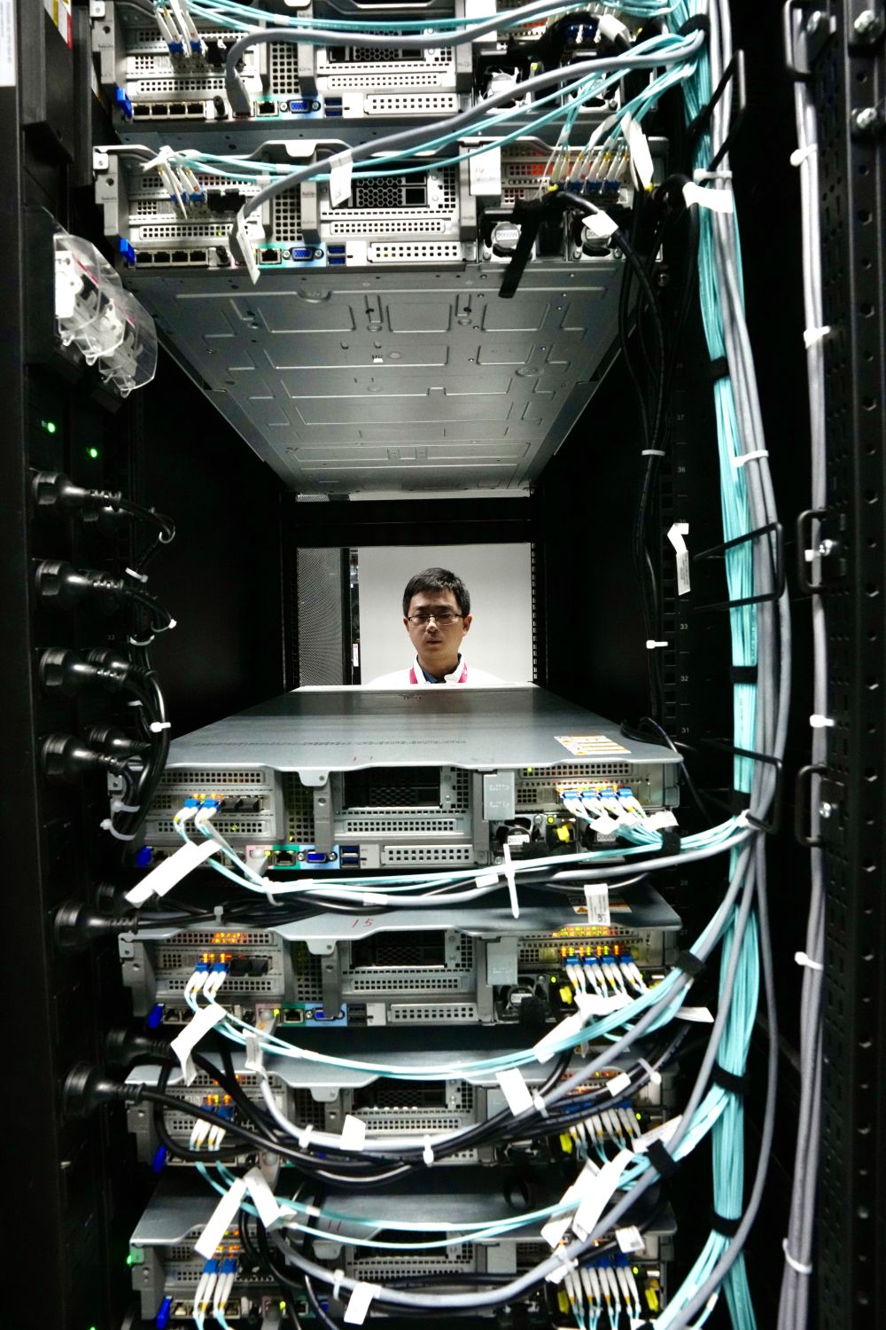 2月27日,克拉瑪依云計算產(chǎn)業(yè)園區(qū)華為云服務數(shù)據(jù)中心,技術(shù)人員正在巡查。新華社發(fā)(崔文娟 攝)