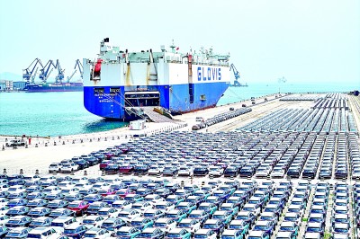 加快推進(jìn)涉外立法工作、協(xié)調(diào)推進(jìn)國內(nèi)治理和國際治理,使得國內(nèi)大循環(huán)和國內(nèi)國際雙循環(huán)不斷暢通。圖為山東港口煙臺港汽車碼頭,整齊停放的商品車等待運(yùn)輸。新華社發(fā)