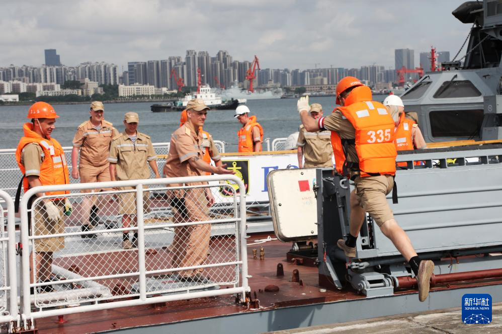 上午9時30分開始,中方海上艦艇編隊指揮艦、導(dǎo)彈驅(qū)逐艦?zāi)蠈幣灺氏入x港,俄“響亮”號、“凜冽”號護衛(wèi)艦及“伊爾庫特”號油船在中方拖船和軍港保障人員的配合下,依次駛離碼頭,中方導(dǎo)彈護衛(wèi)艦咸寧艦、大理艦也接續(xù)離開。隨后中俄艦艇組成單縱隊駛向任務(wù)海域。航渡期間,聯(lián)合導(dǎo)演部按照實戰(zhàn)化要求,通過臨機導(dǎo)調(diào)強化中俄雙方指揮融合度、行動聯(lián)合度。