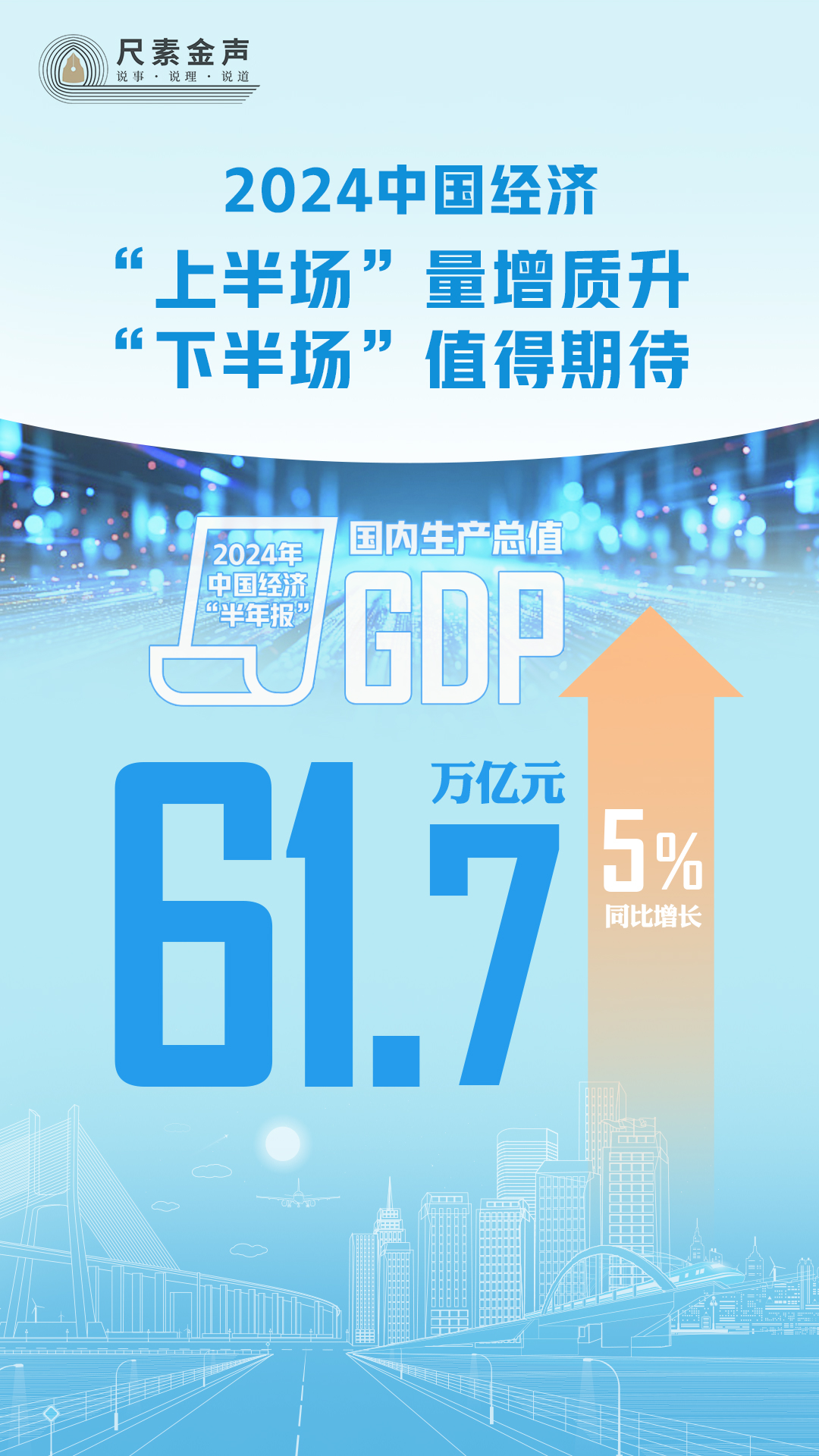 正在北京舉行的黨的二十屆三中全會,將重點研究進一步全面深化改革、推進中國式現(xiàn)代化。改革的“時代新篇”萬眾矚目,中國的發(fā)展也令人高度關注——同日,國家統(tǒng)計局發(fā)布2024年中國經(jīng)濟“半年報”:國內(nèi)生產(chǎn)總值(GDP)61.7萬億元,同比增長5%。結合二季度國內(nèi)外形勢,預計上半年中國經(jīng)濟增速仍將保持領先,仍是世界經(jīng)濟增長的重要引擎和穩(wěn)定力量。