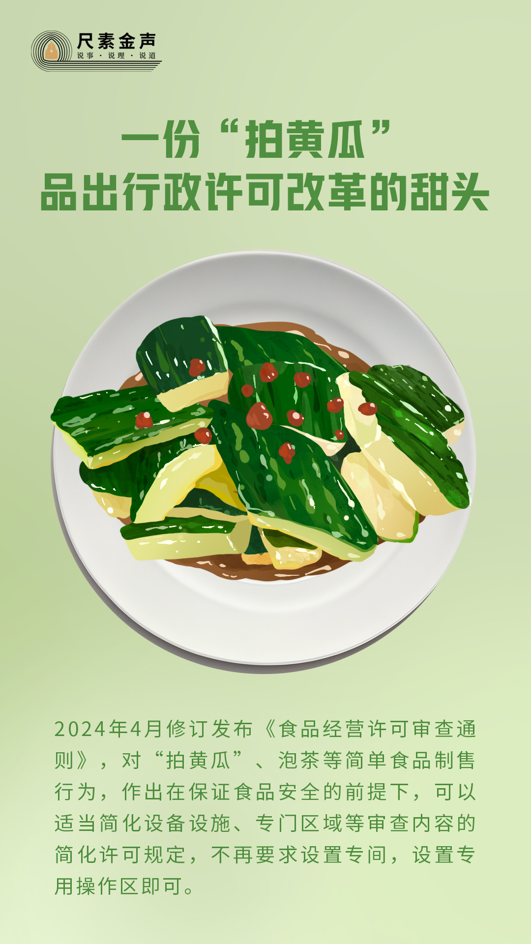 結(jié)合餐飲業(yè)實際,考慮中小經(jīng)營主體和消費者的訴求,科學評估食品安全風險,去年6月,市場監(jiān)管總局修訂發(fā)布《食品經(jīng)營許可和備案管理辦法》,今年4月修訂發(fā)布《食品經(jīng)營許可審查通則》,對“拍黃瓜”、泡茶等簡單食品制售行為,作出在保證食品安全的前提下,可以適當簡化設(shè)備設(shè)施、專門區(qū)域等審查內(nèi)容的簡化許可規(guī)定,不再要求設(shè)置專間,設(shè)置專用操作區(qū)即可。各地市場監(jiān)管部門立足當?shù)貙嶋H優(yōu)化“拍黃瓜”經(jīng)營許可條件,相繼出臺相關(guān)食品經(jīng)營許可和備案管理實施細則。比如,修訂的《上海市食品經(jīng)營許可和備案管理實施辦法》已于5月10日正式實施,明確加工制作植物性冷食類食品(不含非發(fā)酵豆制品),可申請簡單制售經(jīng)營項目,在保證食品安全的前提下,可僅設(shè)置專區(qū)。
