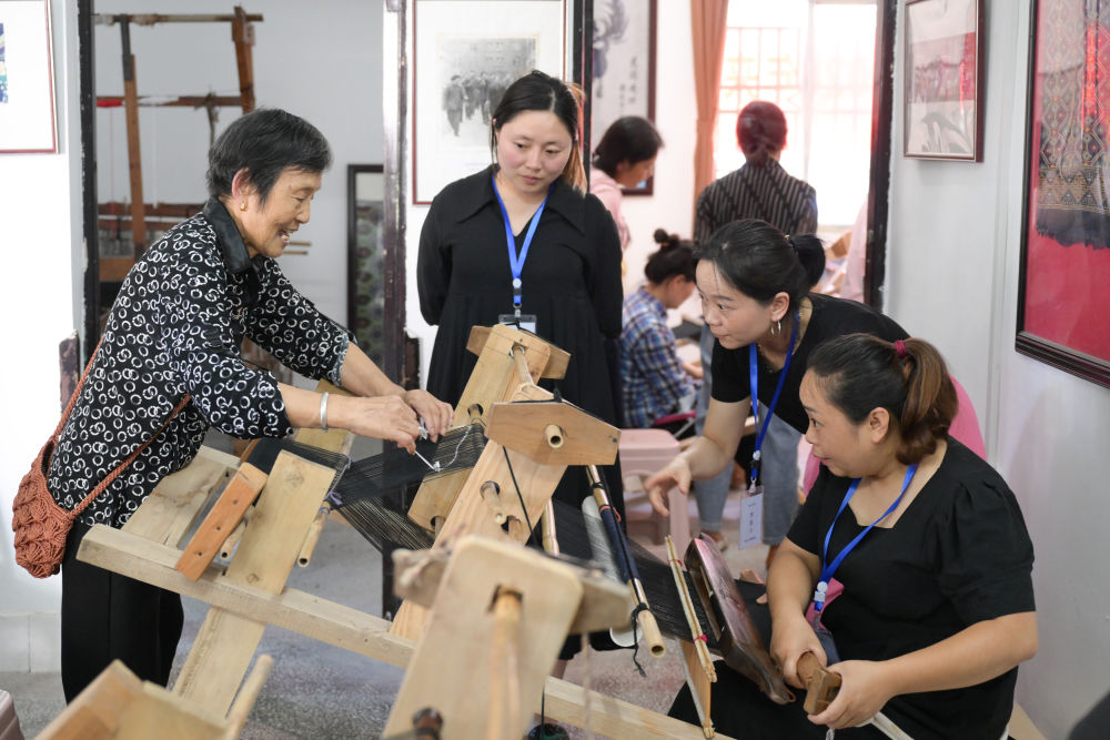 夏日的午后,湖北省恩施州來鳳縣桂花樹社區(qū)濃蔭如蓋,一座位于半坡的三層小樓里不時傳來木織機“吱呀”作響的聲音。