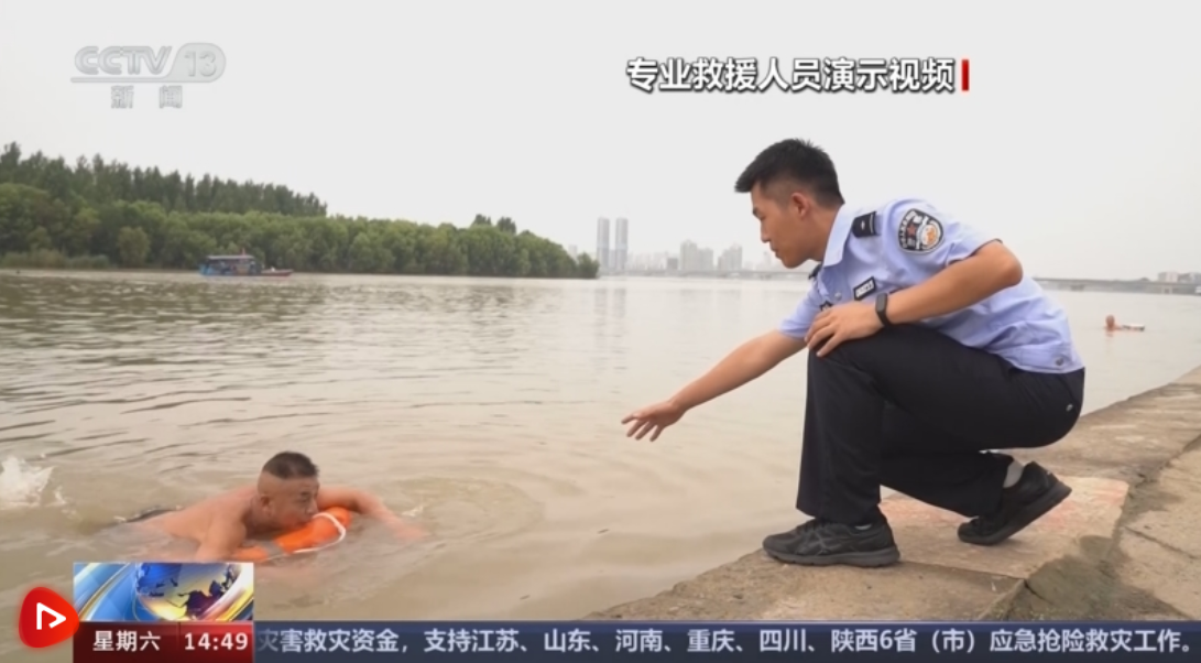 襄陽市襄城區(qū)公安分局民警高培龍介紹,大家如果發(fā)現(xiàn)有人落水,不要盲目施救,首先尋找救生衣、救生圈進行施救,千萬不要手拉手地施救,防治一起溺水。可以到岸邊尋找長竹竿,將溺水者拖上岸。