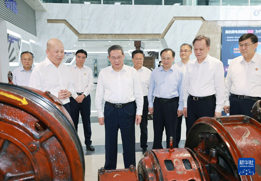 7月22日,中共中央政治局常委、國務院總理李強在天津調(diào)研。這是李強在位于濱海新區(qū)的奧的斯電梯(中國)有限公司了解企業(yè)研發(fā)情況。新華社記者 王曄 攝
