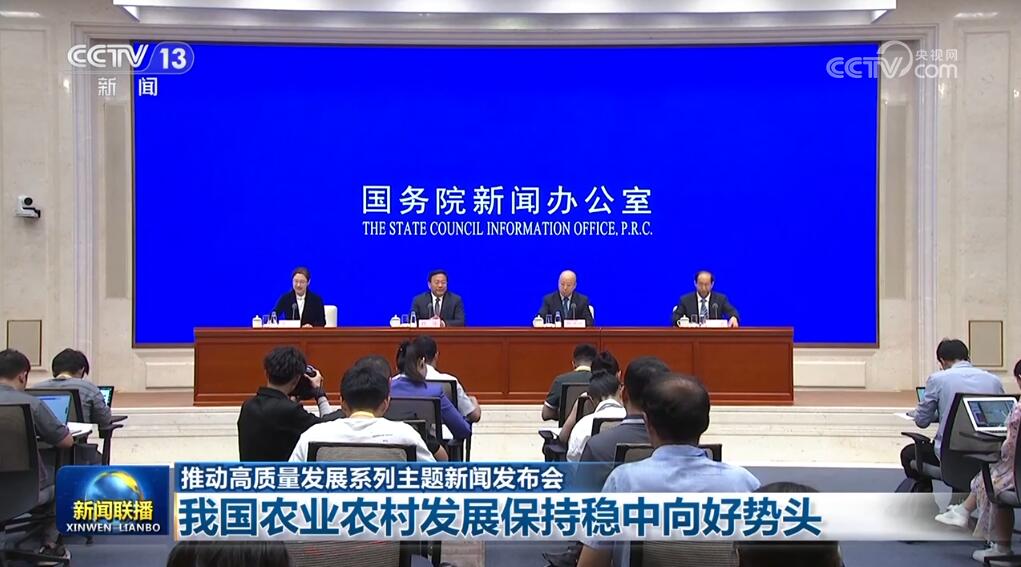 國務院新聞辦公室7月24日舉行推動高質(zhì)量發(fā)展系列主題新聞發(fā)布會,農(nóng)業(yè)農(nóng)村部負責人介紹,黨的十八大以來,我國農(nóng)業(yè)農(nóng)村發(fā)展持續(xù)保持穩(wěn)中向好、穩(wěn)中提質(zhì)勢頭。