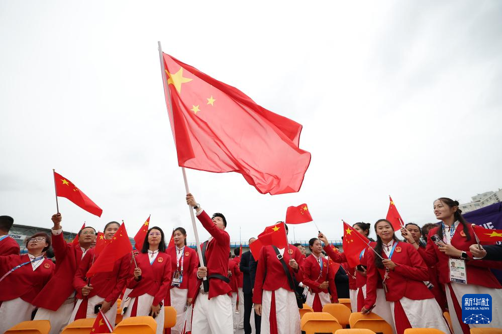 7月26日,中國體育代表團(tuán)在開幕式上。新華社記者 呂小煒 攝