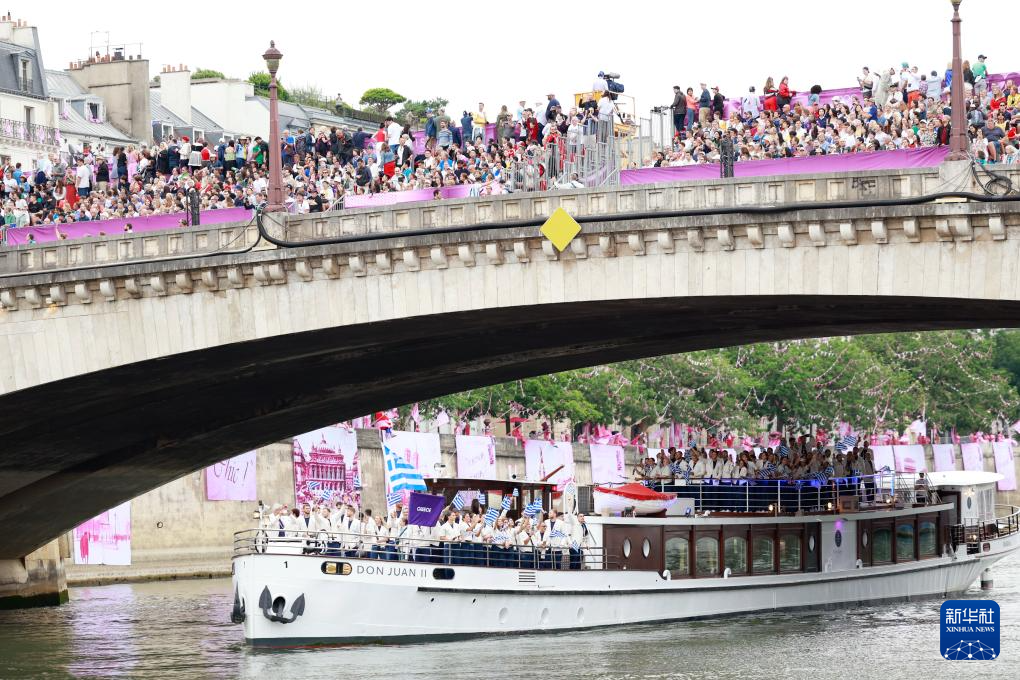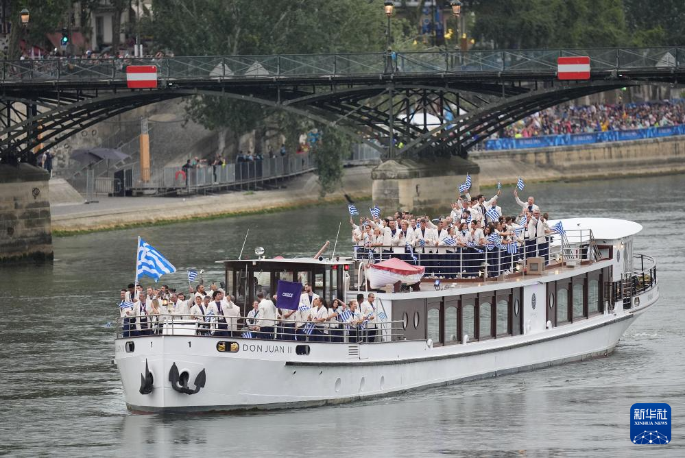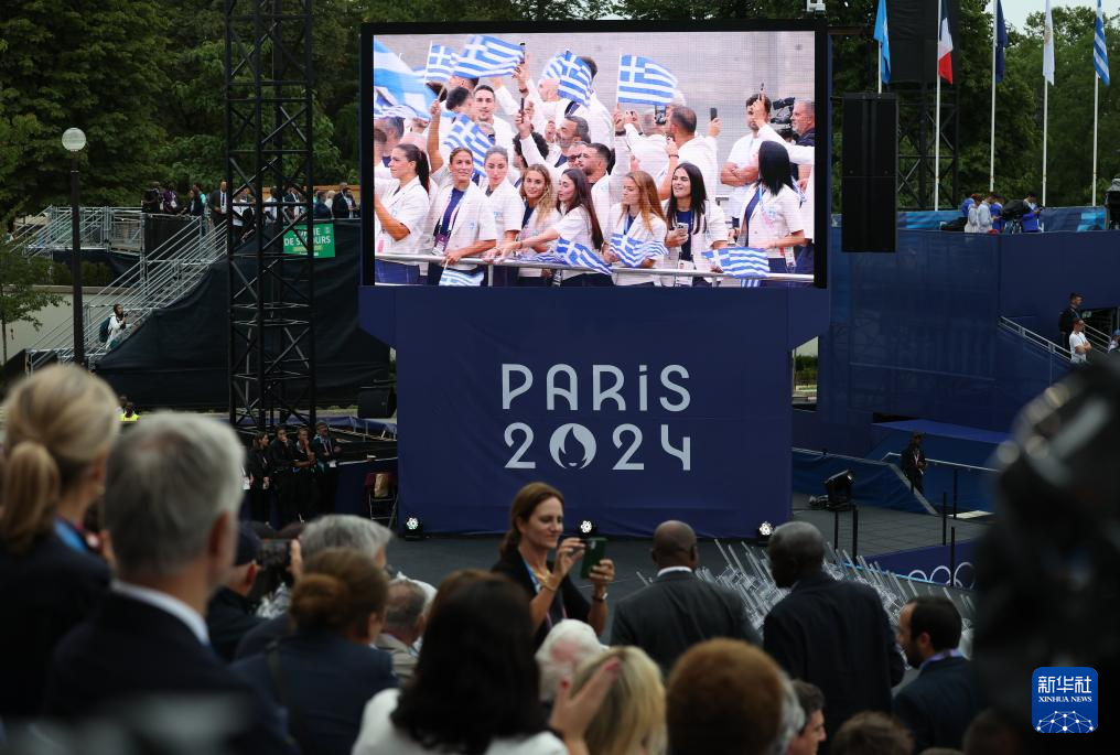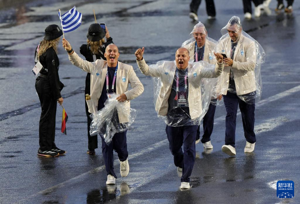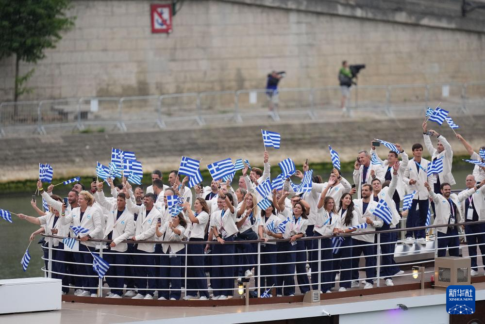 7月26日,希臘體育代表團(tuán)在開幕式上。新華社記者 郭昱 攝