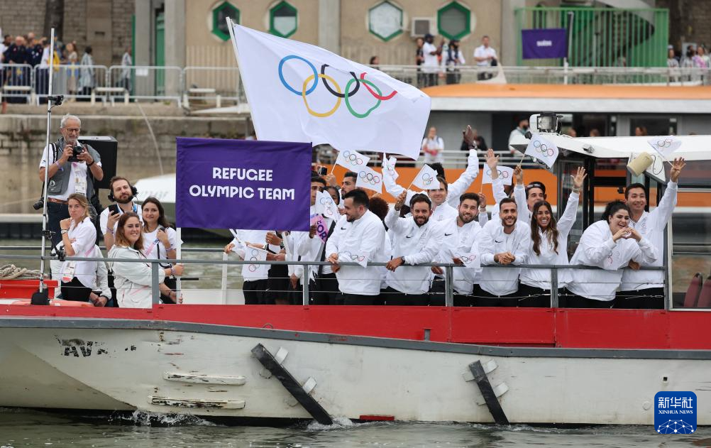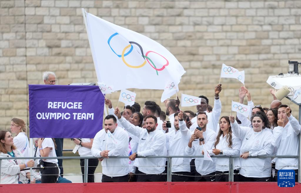 7月26日,難民體育代表團(tuán)在開幕式上。新華社記者 呂小煒 攝
