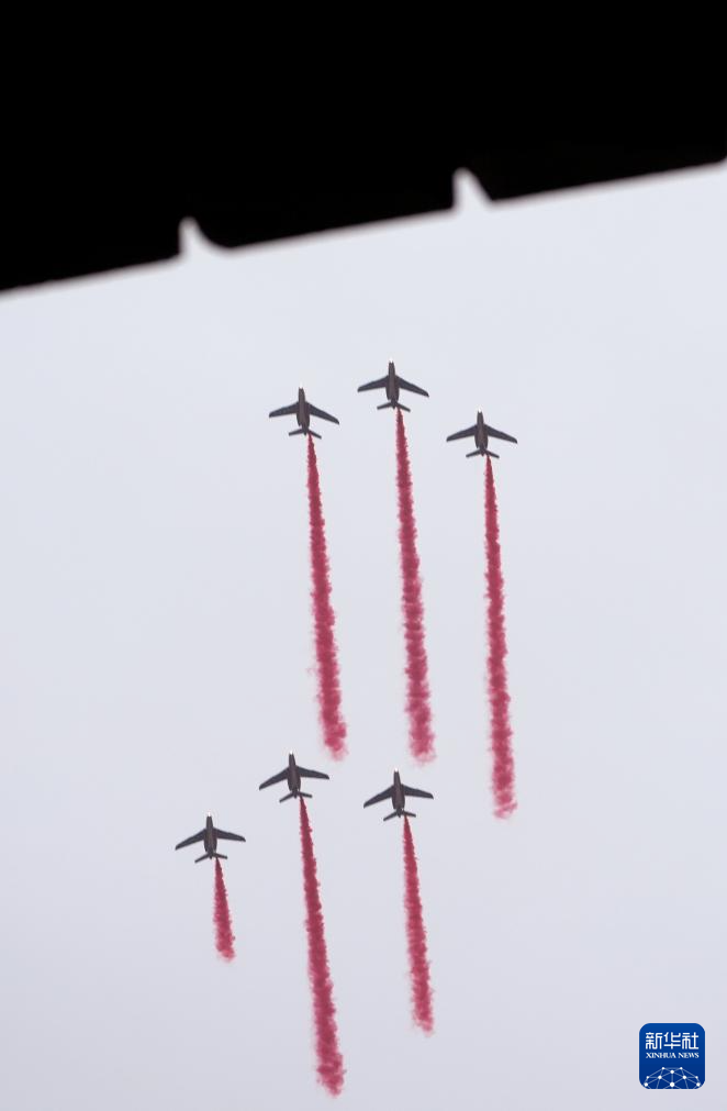 7月26日,飛機(jī)在開幕式上表演。新華社發(fā)(POOL照片/艾賈茲·拉希)