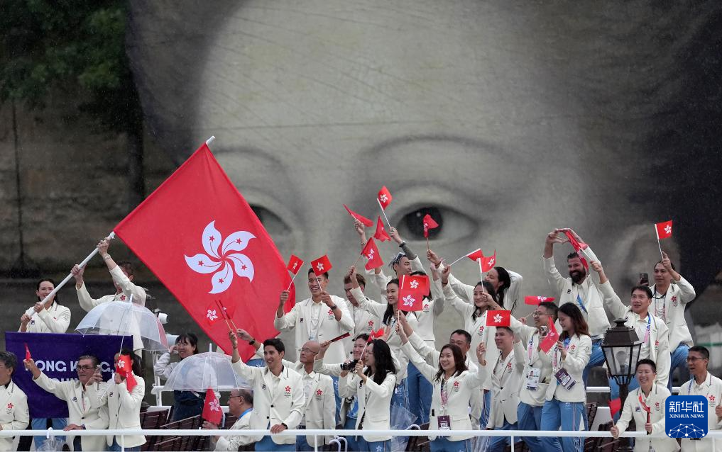 7月26日,中國香港體育代表團(tuán)在開幕式上。新華社記者 呂小煒 攝