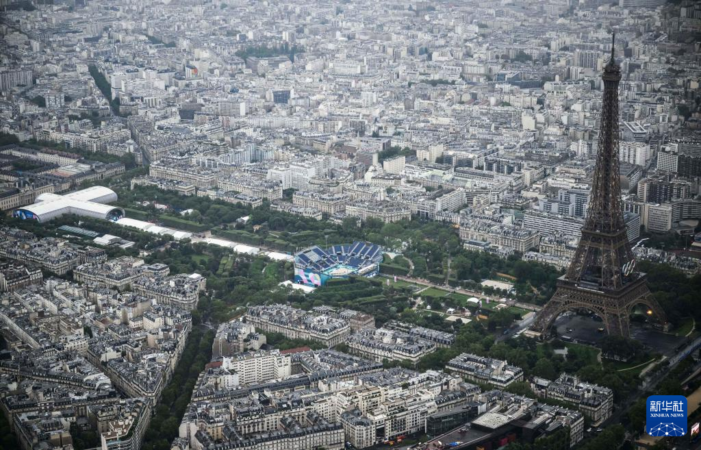 俯瞰開幕式上的埃菲爾鐵塔和戰(zhàn)神廣場(7月26日攝)。新華社發(fā)(POOL照片/利昂內(nèi)爾·博納旺蒂爾)