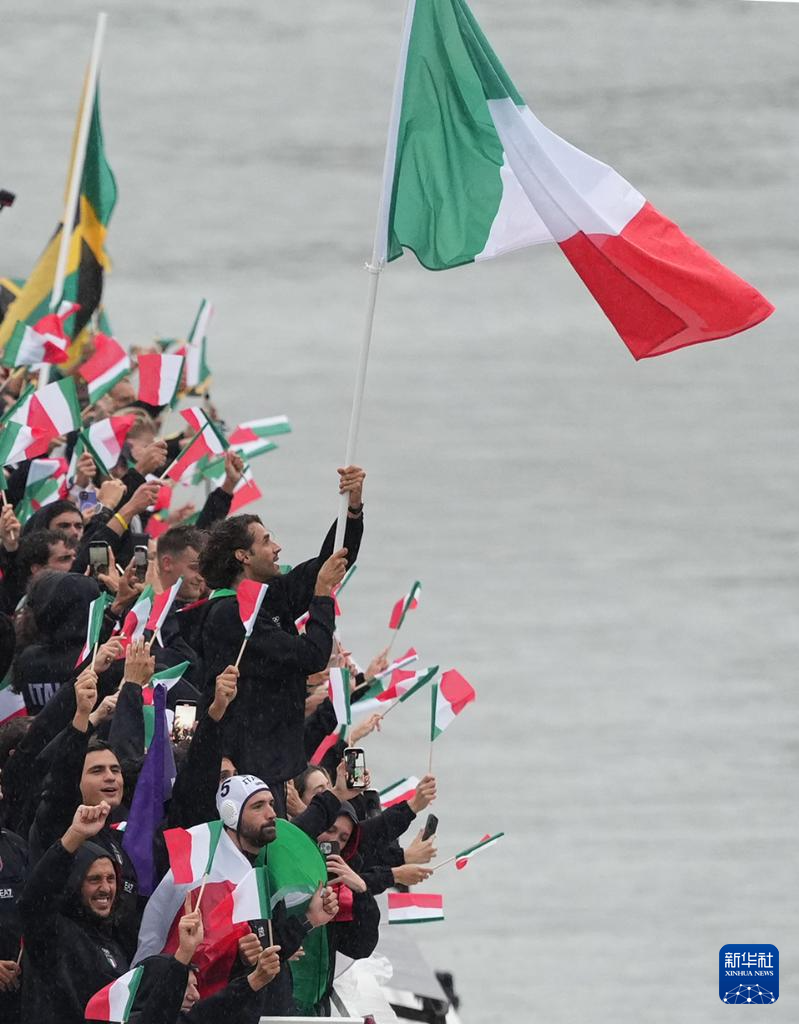 7月26日,意大利體育代表團(tuán)在開幕式上。新華社記者 萬象 攝pagebreak