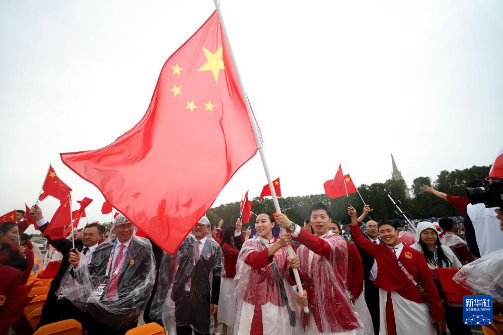7月26日,中國體育代表團(tuán)在開幕式上。新華社記者 郭昱 攝