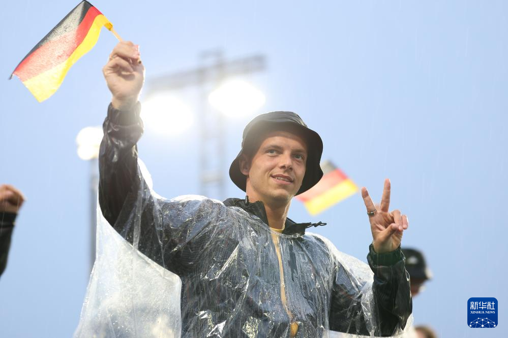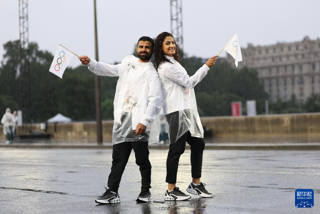 7月26日,觀眾在雨中觀看開幕式。新華社發(fā)(POOL照片/克洛達(dá)赫·基爾科因)