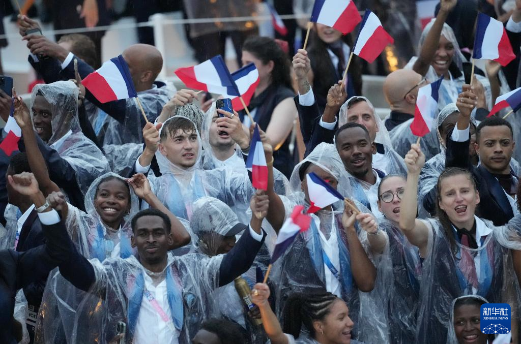 7月26日,法國體育代表團(tuán)在開幕式上。新華社記者 郭昱 攝