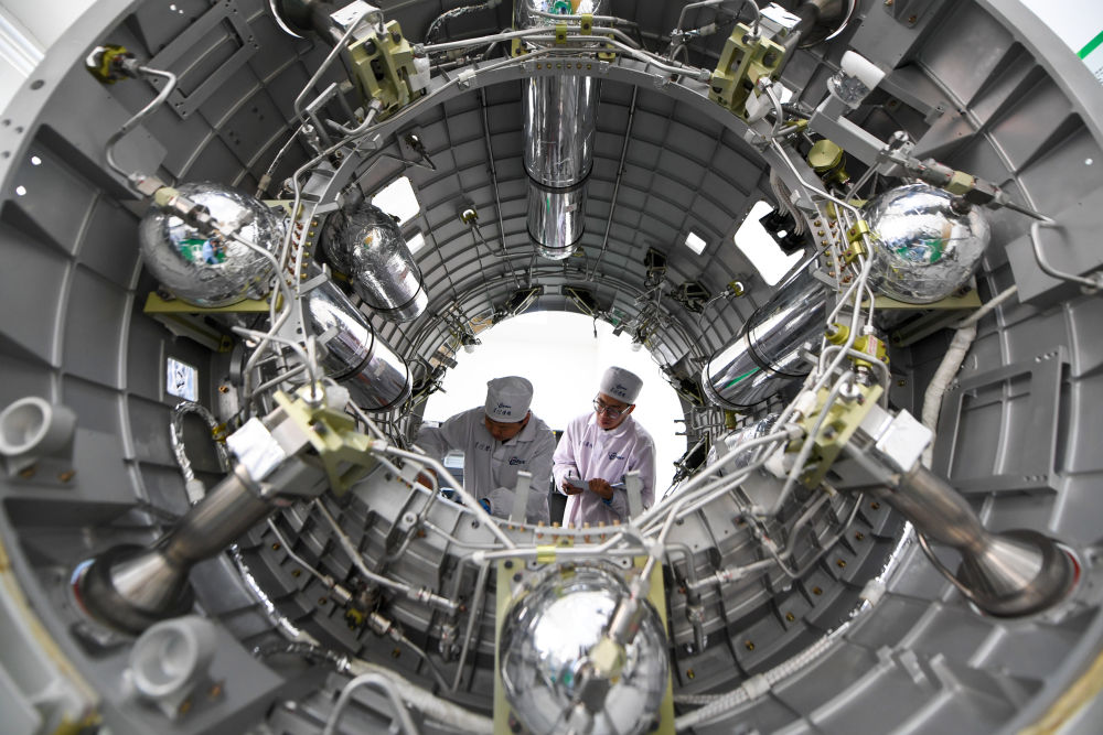 在北京星際榮耀空間科技股份有限公司,裝配測(cè)試人員在安裝液體姿軌控動(dòng)力系統(tǒng)(2024年2月28日攝)。新華社記者 鞠煥宗 攝