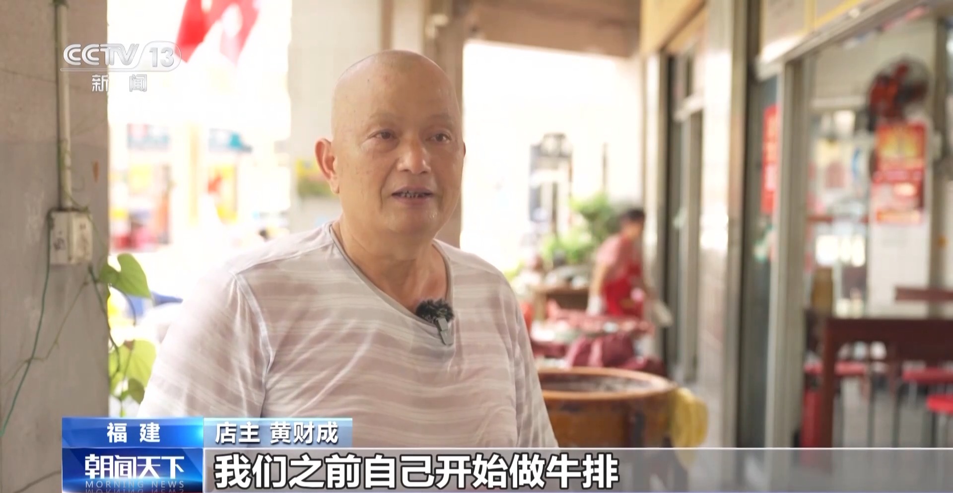 店主 黃財成:一百多年前國外的人來泉州經(jīng)商,基本上都是吃牛肉的。我們之前自己開始做牛排、牛肉羹、牛雜。當年我爺爺去南洋幫廚,再來到我們這邊改良,特別是華僑大學的留學生,周六周日都來我們這家店吃。