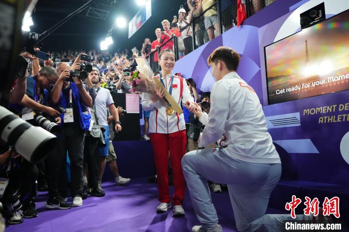 2016年里約奧運(yùn)會(huì),跳水女子三米板的頒獎(jiǎng)典禮后,跳水運(yùn)動(dòng)員秦凱向何姿求婚的場(chǎng)景曾感動(dòng)全球無數(shù)觀眾。巴黎奧運(yùn)會(huì)上,浪漫一刻再度上演。