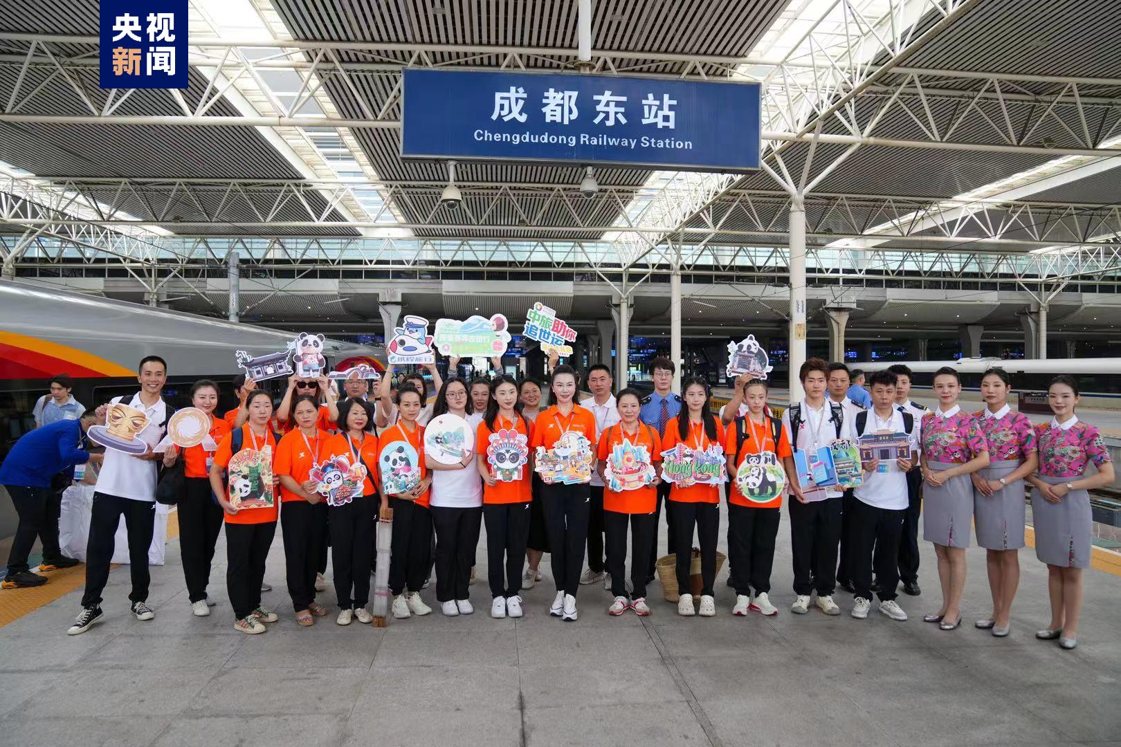 記者從成都世運會執(zhí)委會和中國鐵路成都局集團公司了解到,今天發(fā)車的“世運蓉港行”主題列車(G2963成都東站——香港西九龍站),搭載了川籍奧運冠軍、輪滑運動員、蓉港企業(yè)家、川劇藝術(shù)家、非遺傳承人、川菜企業(yè)、博物館金牌講解員等嘉賓赴港。