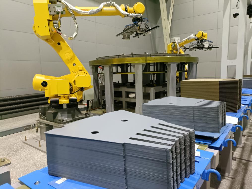 2024年上半年,東輕“數(shù)智化圓錠加工園區(qū)”正式落成。在這條由蘇聯(lián)援建的鋁合金中小直徑圓錠生產(chǎn)線上,機(jī)器人無需人工干預(yù),通過全自動(dòng)的定位和抓取,短時(shí)間內(nèi)就能完成上料填裝等全套流程?!案脑烨埃@條生產(chǎn)線各道工序均需人工參與,效率較低且伴有高強(qiáng)度重復(fù)性勞動(dòng)?!睎|輕熔鑄廠設(shè)備保障組二級(jí)技師王驍睿介紹,“機(jī)器人操作在保障生產(chǎn)進(jìn)度、提高作業(yè)質(zhì)量的同時(shí),有效緩解了崗位人手配置壓力。人機(jī)分離后,安全保障也得到了明顯提升。”