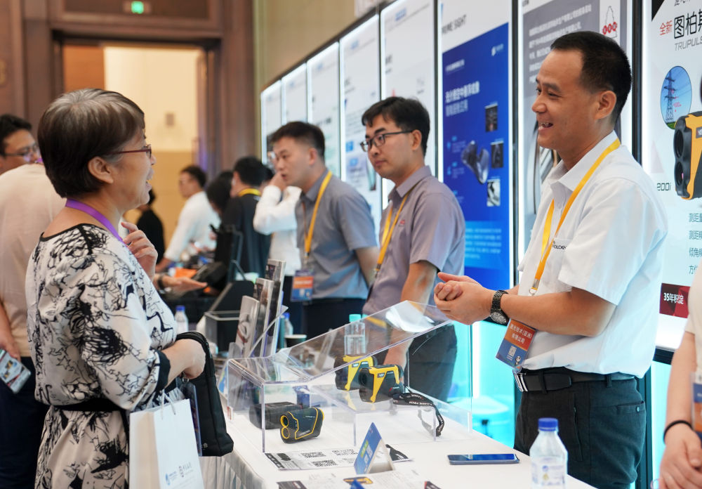 在第七屆進博會技術(shù)裝備、汽車展區(qū)展前供需對接會現(xiàn)場,展商工作人員(右)向采購商介紹企業(yè)產(chǎn)品(2024年8月8日攝)。新華社發(fā)(陳浩明 攝)
